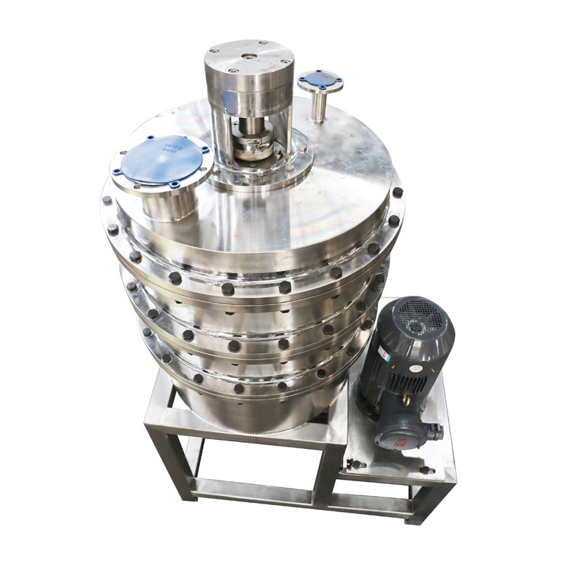 高效旋轉分離機是一種新型高效的分離設備,系統主要由高效旋轉分離機、再沸器、冷凝器、溶劑儲罐和相應輔助設備組成,是傳統精餾塔的替代設備,主要應用于有機溶劑的回收及產品的分離提純。